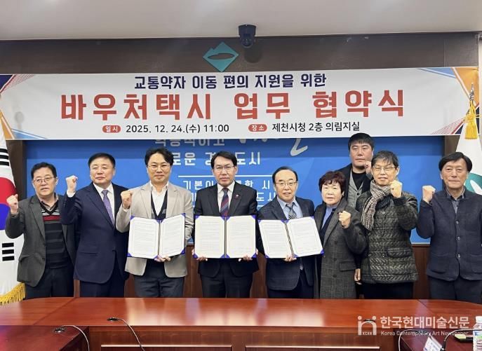 한국현대미술신문 신정은 기자 | 제천시는 지난 24일 교통약자의 이동권 보장과 이동 편의 증진을 위해 청풍호콜센터, ㈜티머니 모빌리티와 바우처택시 업무협약을 체결했다.