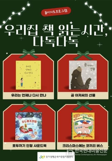한국현대미술신문 배윤섭 기자 | 양평군육아종합지원센터는 연말을 맞아 관내 영유아 가정을 대상으로 가정에서 실천할 수 있는 부모교육과 놀이·독서 연계 프로그램을 운영했다.