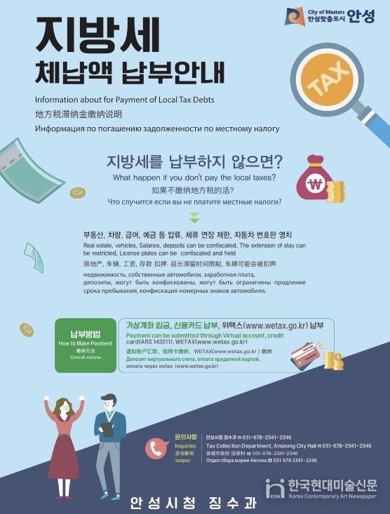 한국현대미술신문 배윤섭 기자 | 안성시는 외국인 근로자의 지방세 체납액 징수를 위해 외국인 전용보험 압류를 추진한다고 밝혔다.