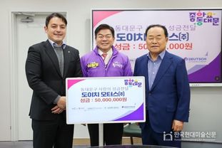 한국현대미술신문 배건 기자 | 서울 동대문구는 도이치모터스로부터 사랑의 성금 5000만원을 전달받았다고 밝혔다. 도이치모터스가 2011년부터 올해까지 15년째 이어온 기부는 2011~2024년 누적 2억6500만원에 달하며, 올해도 5000만원을 보태 지역 나눔을 이어갔다.