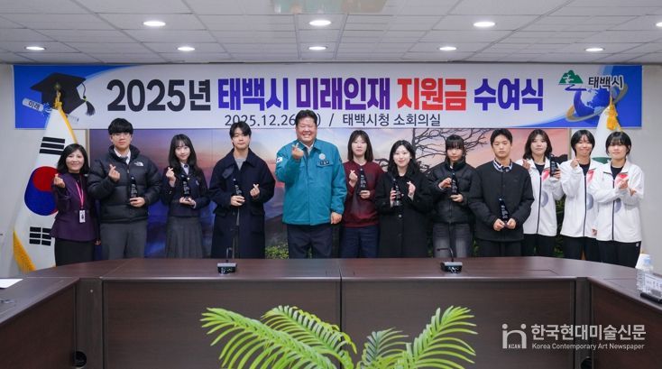 한국현대미술신문 원진 기자 | 태백시 지난 26일 시청 소회의실에서 2025년 태백시 미래인재 신규 선발자와 그 가족 등이 참석한 가운데 미래인재 지원금 및 인증패 수여식을 개최했다.