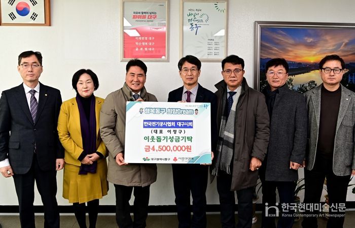 한국현대미술신문 정소영 기자 | 한국전기공사협회 대구시회는 지난 26일, 동구청을 방문해 연말을 맞아 어려운 이웃을 돕기 위한 성금 450만원을 전달했다.