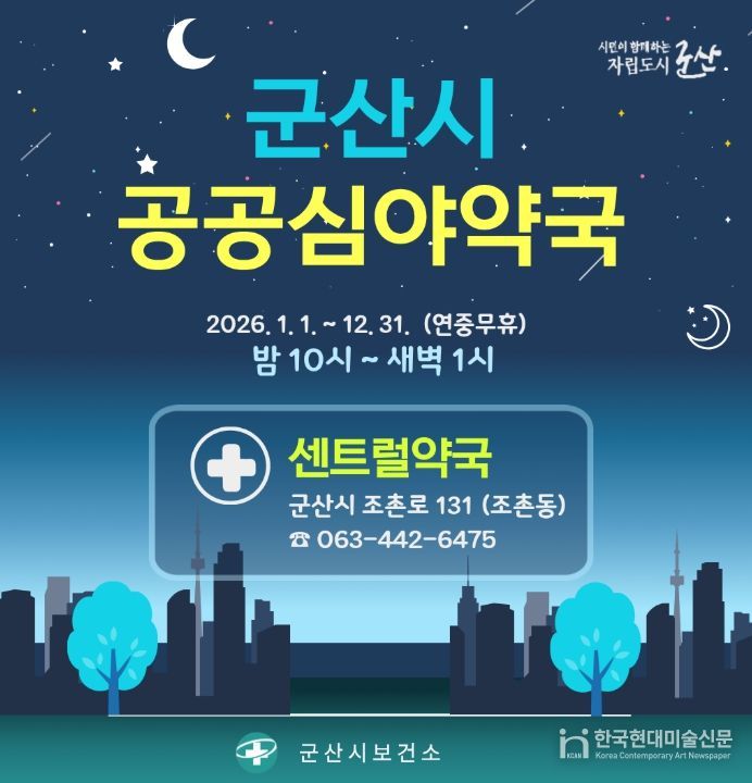 한국현대미술신문 기자 | 군산시가 시민들의 심야시간대 의약품 접근성을 높이기 위해 2026년에도 공공심야약국을 ‘센트럴약국’에서 지속 운영한다고 29일 밝혔다.