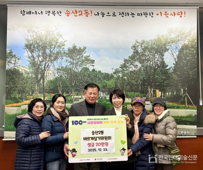 한국현대미술신문 배윤섭 기자 | 의정부시 송산2동주민센터는 12월 23일 송산2동 바르게살기위원회가 관내 어려운 이웃을 돕기 위해 ‘100일간 사랑릴레이 배턴 잇기’에 동참해 성금 20만 원을 기탁했다고 밝혔다.
