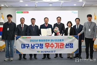 한국현대미술신문 정소영 기자 | 대구 남구는 행정안전부가 주관한 ’2025년도 재난관리평가‘에서 우수기관으로 선정되어 장관 표창과 특별교부세 1억 3000만원, 포상금 400만원을 지원받는다고 밝혔다.