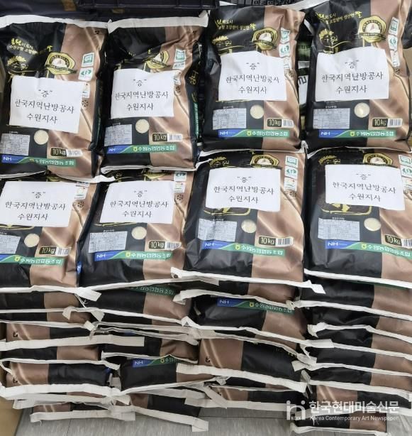 한국현대미술신문 배윤섭 기자 | 지난 29일 한국지역난방공사 수원지사는 지역사회 어르신들을 위한 나눔 활동의 일환으로 광교1동 21개소 경로당에 쌀 42포를 기부했다.