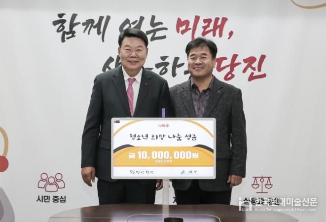한국현대미술신문 신정은 기자 | ㈜벽우는 지난 30일 오후 당진시청 7층 접견실에서 지역 내 어려운 이웃을 돕기 위한 성금 1000만 원을 당진시에 기탁했다.