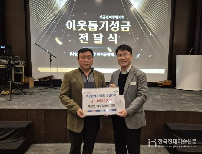 한국현대미술신문 배윤섭 기자 | 양평군 개군면은 새해를 맞아 개군면 이장협의회가 지역 내 어려운 이웃을 돕기 위해 성금 100만 원을 기탁하며 따뜻한 나눔을 실천했다고 밝혔다. 기탁된 성금은 개군면 내 취약계층을 위한 복지 지원에 사용될 예정이다.