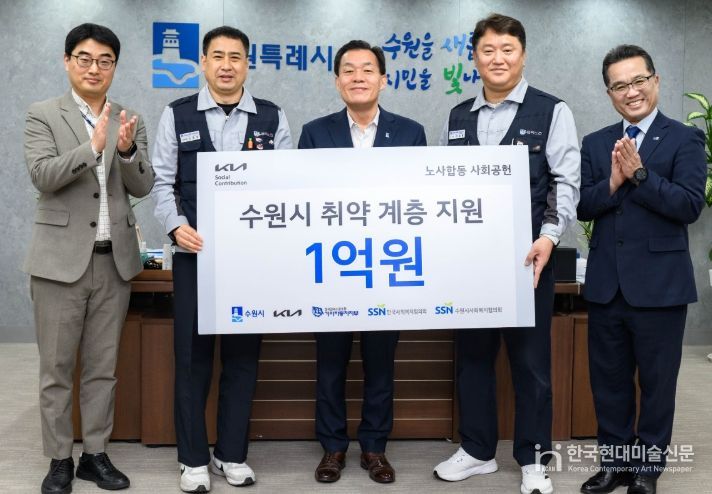 한국현대미술신문 배윤섭 기자 | 기아(주) 노사가 “수원시 취약계층 지원에 사용해달라”며 1억 원을 한국사회복지협의회에 기탁했다. 기부금은 수원시사회복지협의회를 통해 수원시 복지사각지대와 취약계층 지원에 사용될 예정이다.