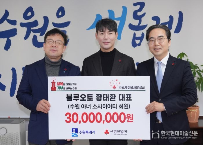 한국현대미술신문 배윤섭 기자 | 황태환 블루오토 대표가 12월 31일 “취약계층 아동 지원에 사용해달라”며 3000만 원을 수원시에 기부했다.