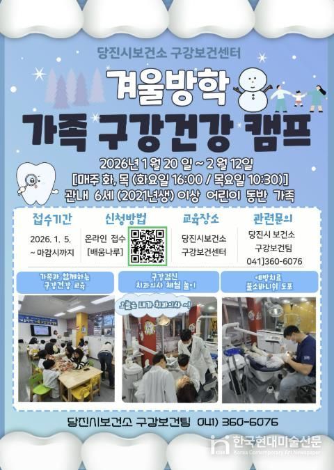 한국현대미술신문 신정은 기자 | 당진시보건소는 겨울방학을 맞이하여 온 가족이 함께 참여할 수 있는 가족 구강건강 캠프를 운영한다고 2일 밝혔다.