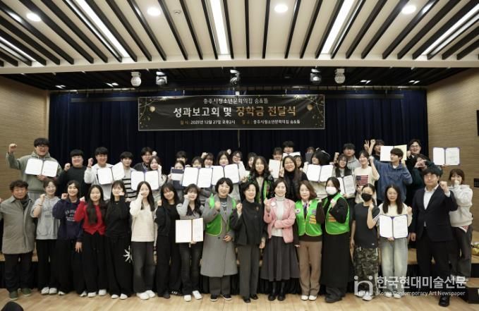 한국현대미술신문 신정은 기자 | 충주시청소년문화의집 숨&뜰은 ‘2025년 충주시청소년문화의집 숨&뜰 성과보고회 및 장학금 전달식’을 성황리에 개최하며 한 해 활동을 마무리했다.