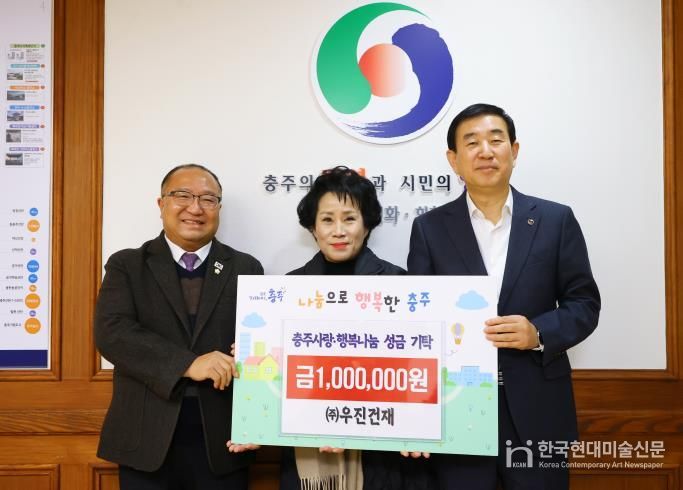 한국현대미술신문 신정은 기자 | 충주시는 지역기업 우진건재가 시청을 방문해 어려운 이웃을 위한 ‘충주사랑행복나눔’ 기금 100만 원을 기탁했다고 2일 밝혔다.