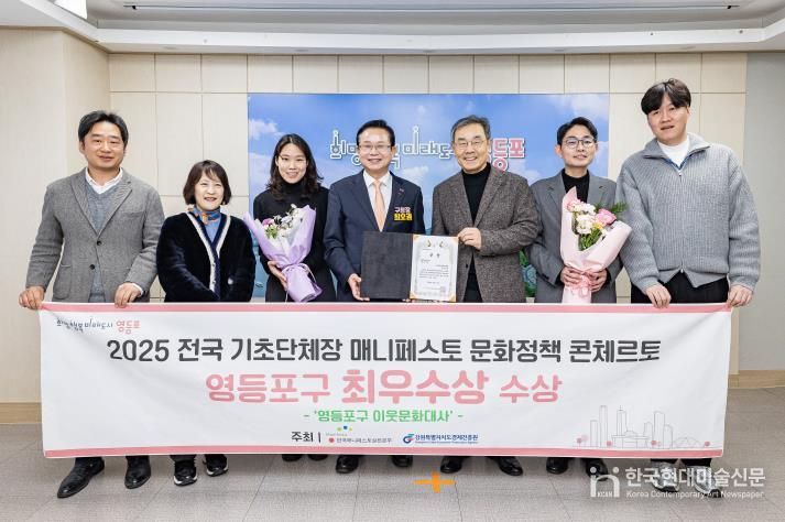 한국현대미술신문 배건 기자 | 영등포구가 사단법인 한국매니페스토실천본부가 주최한 ‘2025년 제1회 전국 메니페스토 문화정책 콘체르토(Concerto)’에서 문화활동 활성화 분야 최우수상을 수상했다고 밝혔다.