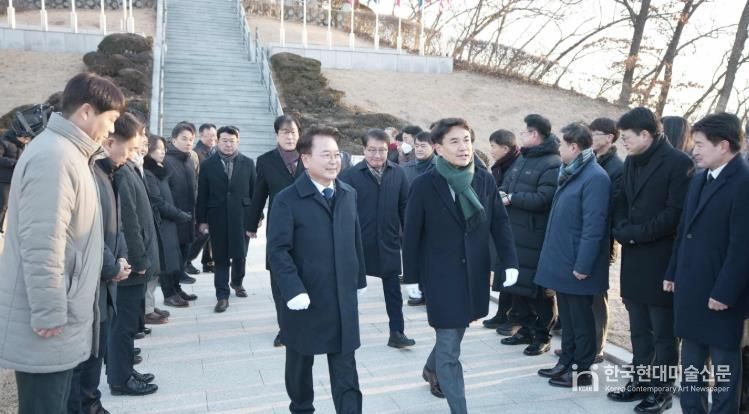 한국현대미술신문 원진 기자 | 춘천시가 2026년 새해 첫 공식일정으로 2일 우두동 충렬탑에서 신년참배를 거행, 춘천의 안녕과 발전을 기원했다.