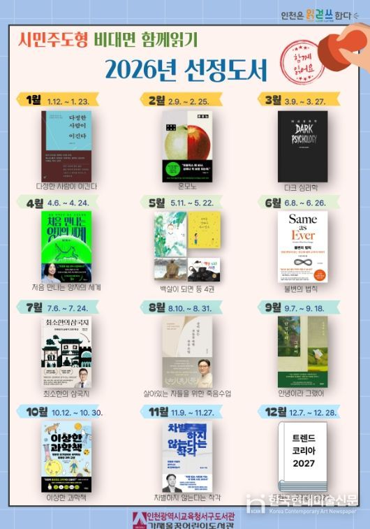 한국현대미술신문 박재남 기자 | 인천광역시교육청서구도서관은 12월 31일 ‘2026년 시민주도형 비대면 함께읽기’ 도서 15권을 선정·발표했다.