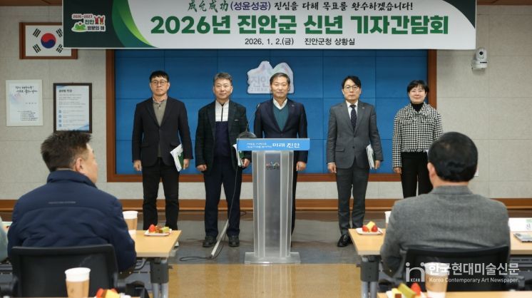 한국현대미술신문 기자 | 진안군은 2일 군청 상황실에서 신년 기자 간담회를 갖고 지난 한 해의 군정 성과를 공유하며, 2026년을 ‘준비된 변화가 확실한 결과와 결실로 완성되는 해’로 만들겠다는 새해 군정 운영 방향을 밝혔다.