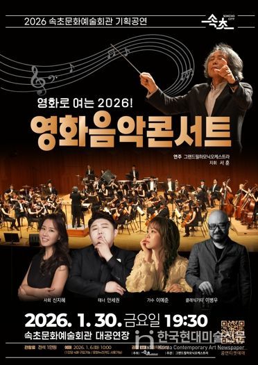 한국현대미술신문 원진 기자 | 속초시가 2026년 새해를 맞아 1월 30일 오후 7시 30분, 속초문화예술회관 대공연장에서 ‘영화로 여는 2026! 영화음악콘서트’를 개최한다.
