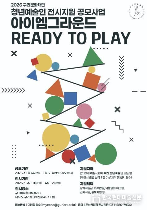한국현대미술신문 배윤섭 기자 | (재)구리문화재단은 청년 예술인의 도약과 성장을 지원하기 위한 청년 정책 플랫폼 사업의 일환으로, 2026년 청년 예술인 전시지원 공모사업 '아이엠 그라운드, Ready to Play'에 참여할 예술인을 1월 6일부터 1월 31일까지 모집한다.