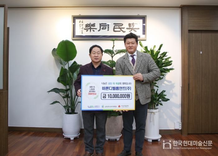 한국현대미술신문 배윤섭 기자 | 남양주시는 5일 바른디벨롭먼트 주식회사가 지역 내 취약계층 지원을 위해 후원금 1천만 원을 남양주시복지재단에 기탁했다고 밝혔다.