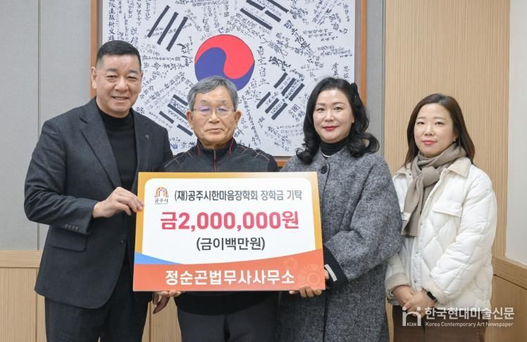 한국현대미술신문 신정은 기자 | 정순곤법무사사무소는 지난 6일 (재)공주시한마음장학회에 가정형편이 어려운 학생들을 위한 장학금 200만 원을 기탁했다.