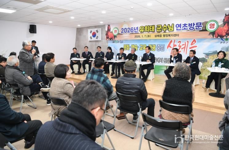 한국현대미술신문 기자 | 유희태 완주군수가 7일 삼례읍과 이서면을 차례로 방문해 2026년 군정 운영 방향과 지역별 주요 사업 계획을 설명하고 주민들과 직접 소통하는 연초방문 일정을 진행했다.