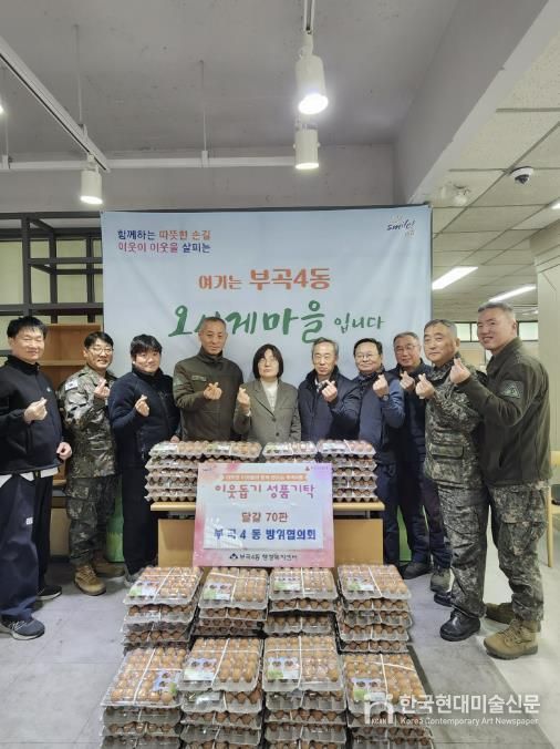 한국현대미술신문 정소영 기자 | 부산시 금정구 부곡4동 방위협의회는 새해를 맞아 지난 9일 지역 내 저소득 이웃을 돕기 위해 달걀 70판을 부곡4동에 기탁했다.