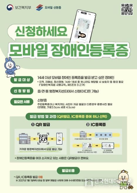 군 관계자는 “모바일 장애인등록증 도입은 디지털 기술을 활용해 장애인의 생활 편의를 실질적으로 개선하기 위한 것”이라며 “제도가 안정적으로 정착될 수 있도록 충분한 안내와 지원을 제공하겠다”고 말했다.