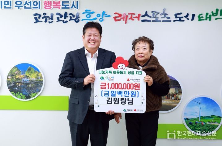 한국현대미술신문 원진 기자 | 태백시는 김원랑 님이 지난 13일 ‘희망2026 나눔캠페인’ 성금 100만 원을 기부했다고 밝혔다.