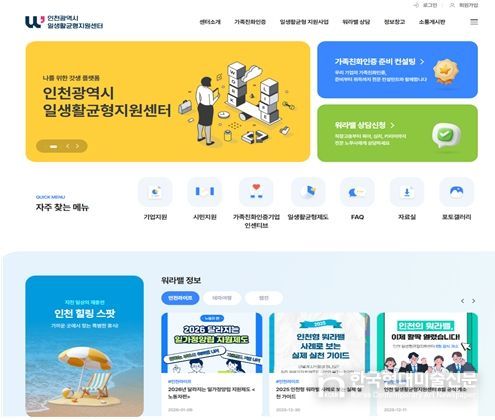 인천일생활균형지원센터 관계자는 “홈페이지와 SNS를 통해 인천시의 일·생활균형 정책과 제도를 시민에게 보다 쉽게 전달하고, 더 많은 시민이 일상 속에서 일·생활균형을 누릴 수 있도록 하겠다”며 “올해는 워라밸 공모전과 캠페인 등 다채로운 사업으로 시민 여러분을 찾아뵐 예정이니 많은 관심과 참여를 바란다”고 말했다.
