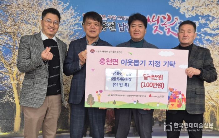 한국현대미술신문 배윤섭 기자 | 흥천남한강벚꽃축제위원장 이인묵 씨가 지난 1월 12일 지역 내 어려운 이웃을 위해 이웃돕기 성금 100만원을 기탁하며 따뜻한 나눔을 실천했다.