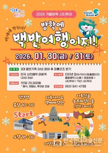 한국현대미술신문 기자 | 익산시가 겨울방학을 맞아 지역의 역사와 문화를 함께 즐길 수 있는 시티투어를 운영한다.