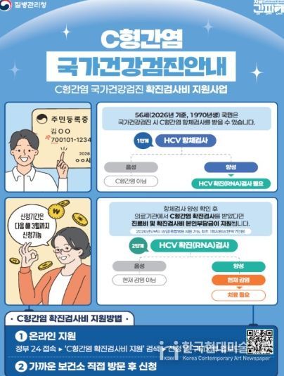 한국현대미술신문 배윤섭 기자 | 고양특례시 일산서구보건소는 질병관리청의 C형간염 관리 강화 방침에 따라, 2026년부터 국가건강검진 C형간염 항체 양성자에 대한 ‘확진검사비 지원 사업’이 종합병원 및 상급종합병원까지 확대 시행된다고 밝혔다.