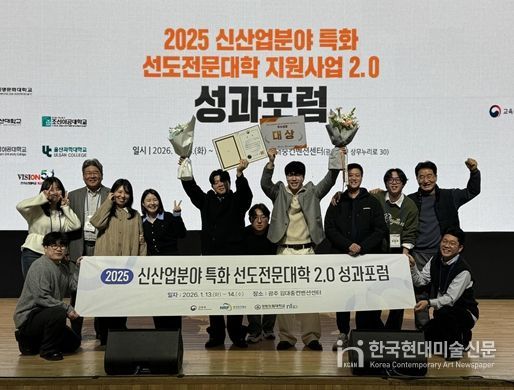 한국현대미술신문 원진 기자 | 강원도립대학교는 ‘신산업분야 특화 선도전문대학 지원사업 2.0 성과포럼’ 우수성과 전시 시상식에서 대학 부문 우수성과 ‘대상’ 수상과 함께, 소속 학생인 한재민 학생이 개인 부문 사업 성과 대상(교육부 장관상)을 수상하여 대학·개인 2개 부문을 석권했다.