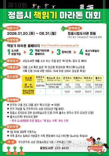 도서관 관계자는 “이번 대회를 통해 많은 시민이 완주의 기쁨을 맛보고, 독서를 일상의 즐거움으로 삼는 계기가 되길 바란다”고 했다.