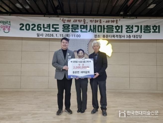 한국현대미술신문 배윤섭 기자 | 양평군 용문면은 지난 15일 용문면새마을회가 새해를 맞아 지역 내 어려운 이웃을 돕기 위한 성금 200만 원을 기탁하며 따뜻한 나눔을 실천했다고 밝혔다.