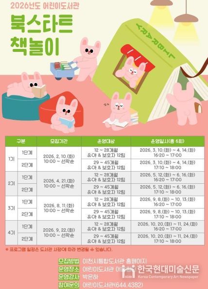 한국현대미술신문 배윤섭 기자 | 이천시 어린이도서관이 2026년 영유아와 양육자를 위한 ‘북스타트 책놀이’ 프로그램을 운영한다.