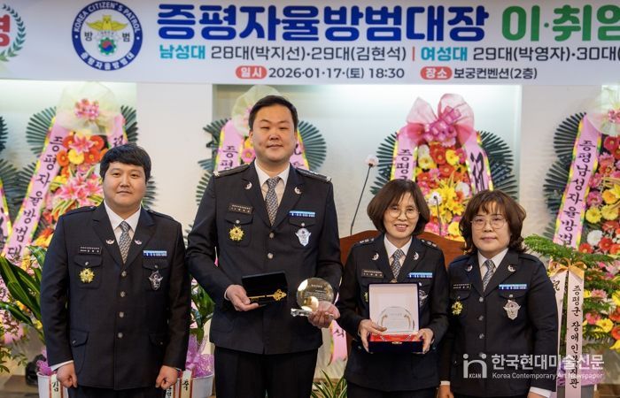 한국현대미술신문 신정은 기자 | 충북 증평군자율방범대장 이·취임식이 17일 보궁컨벤션에서 열렸다.