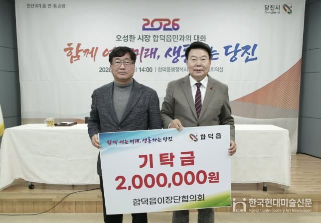 한국현대미술신문 신정은 기자 | 당진시는 합덕읍이장단협의회가 지난 16일 합덕읍 행정복지센터에 지역 주민을 위해 사용해 달라며 이웃돕기 성금 200만 원을 기탁했다고 19일 밝혔다.