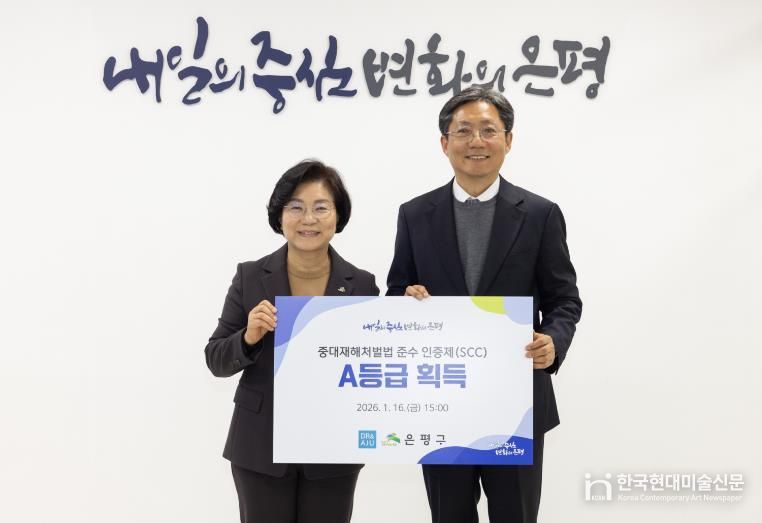 한국현대미술신문 배건 기자 | 서울 은평구는 중대산업재해와 중대시민재해 예방을 위한 선제적 안전관리 성과를 인정받아 국제표준 안전보건경영시스템인 ISO 45001과 중대재해처벌법 준수 인증제(SCC)를 전국 기초지자체 최초로 동시에 획득했다고 밝혔다.