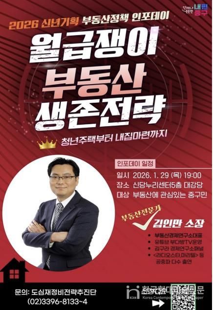 한국현대미술신문 배건 기자 | 서울 중구가 급변하는 부동산 환경 속에서 주민들의 현실적인 대응 전략을 돕기 위해 오는 29일 저녁 7시 신당누리센터 5층 대강당에서 올해 첫 도시런(learn) 스쿨‘신년기획 부동산 전략 인포(INFO)데이’를 연다.