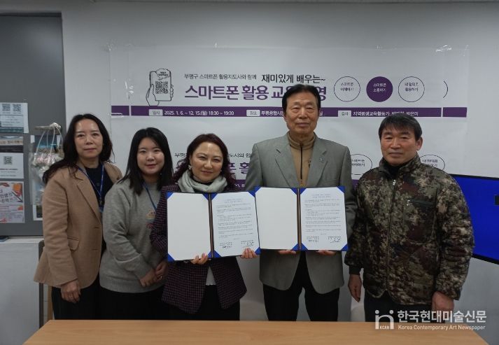 한국현대미술신문 박재남 기자 | 부평구 산곡노인문화센터는 지난 16일 부평종합시장 고객지원센터에서 부평종합시장상인회와 ‘1:1 맞춤형 온라인 길라잡이’ 사업추진을 위한 업무협약식을 체결했다.
