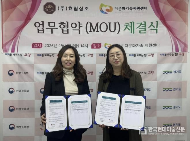 한국현대미술신문 배윤섭 기자 | 고양시다문화가족지원센터는 지난 16일, 효림상조와 다문화가정의 안정적인 일상지원과 지역사회 상생을 위한 업무협약(MOU)을 체결했다고 밝혔다.