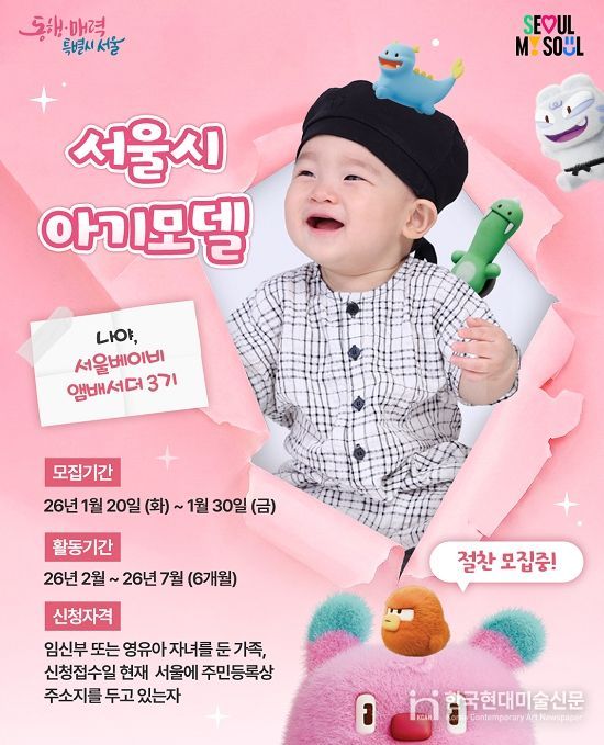 한국현대미술신문 배건 기자 | 생생한 육아 일상을 통해 아이를 키우는 기쁨과 그 과정에서 도움을 받을 수 있는 서울시의 다양한 임신·출산·육아 정책을 시민 눈높이에서 소개할 ‘서울베이비앰배서더’(baby ambassador)의 새 얼굴을 찾는다.