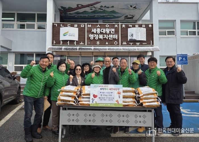 한국현대미술신문 배윤섭 기자 | 19일 세종대왕면 새마을지도자에서 관내 어려운 이웃을 위해 쌀 10kg 21포를 세종대왕면 지역사회보장협의체에 기탁했다.
