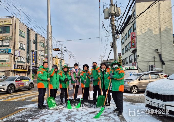한국현대미술신문 배윤섭 기자 | 눈 치우는 손길이 점점 줄어드는 요즘, 이천시 부발읍 자율방재단이 지역 주민의 안전을 위해 현장에 먼저 나섰다.