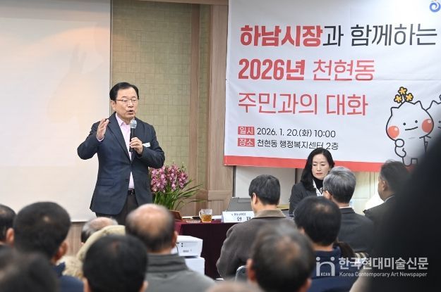 한국현대미술신문 배윤섭 기자 | 이현재 하남시장은 20일 감일동 행정복지센터에서 열린 ‘주민과의 대화’에서 “방아다리길 연결도로 개통과 연계한 버스 노선 개편 및 생활 SOC 확충을 통해 감일신도시 주민들의 정주 여건을 개선하겠다”라고 밝혔다.