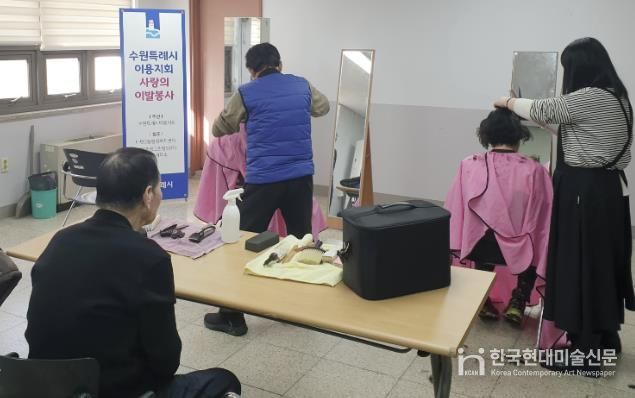 한국현대미술신문 배윤섭 기자 | 수원시 영통구 매탄3동에 위치한 미용실 ‘시저스맨’이 지역 내 저소득 노인과 장애인을 위한 정기적인 이발 봉사를 이어가고 있다.