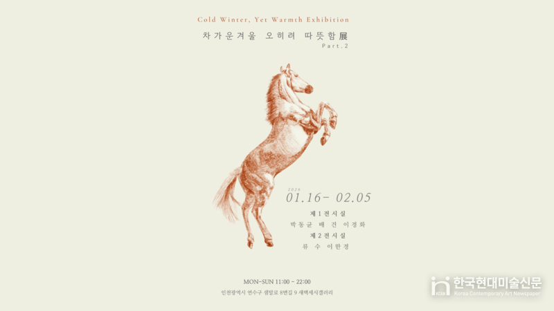 2026년 1월 16일부터 2월 5일까지 인천 연수구 새벽세시 갤러리에서 박동균, 배건, 이경화, 류수, 이한경 작가가 참여하는 『차가운 겨울, 오히려 따뜻함 展』이 열린다. 이번 전시는 겨울이라는 계절적 시간성 위에 ‘따뜻함’이라는 정서를 중첩시키며, 예술이 감각과 마음에 건네는 위로의 가능성을 조망한다.