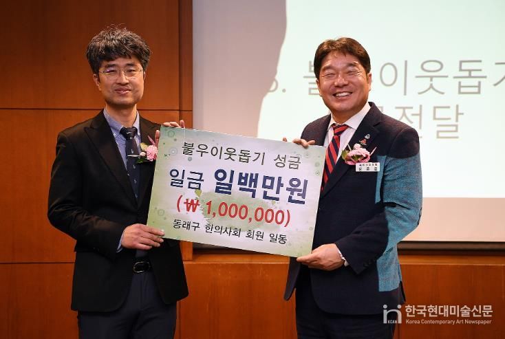 한국현대미술신문 정소영 기자 | 부산 동래구는 지난 21일 동래구 한의사회가 정기총회에서 어려운 이웃을 위한 ‘희망 2026 나눔 캠페인’에 동참하며 이웃돕기 성금 100만 원을 전달했다고 밝혔다.